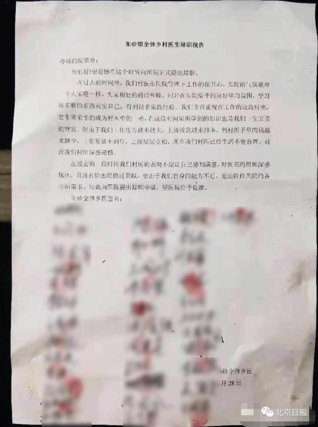 以下是36名乡村医生在线发布的辞职信: